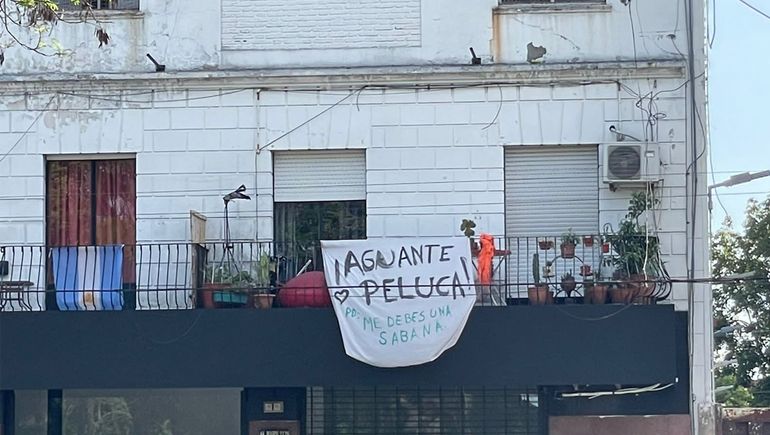 Rolón compartió la imagen del balcón de un edificio donde colgaba una sábana blanca pintada a mano alzada una frase dirigida al líder libertario: “¡Aguante Peluca! PD. Me debés una sábana”.