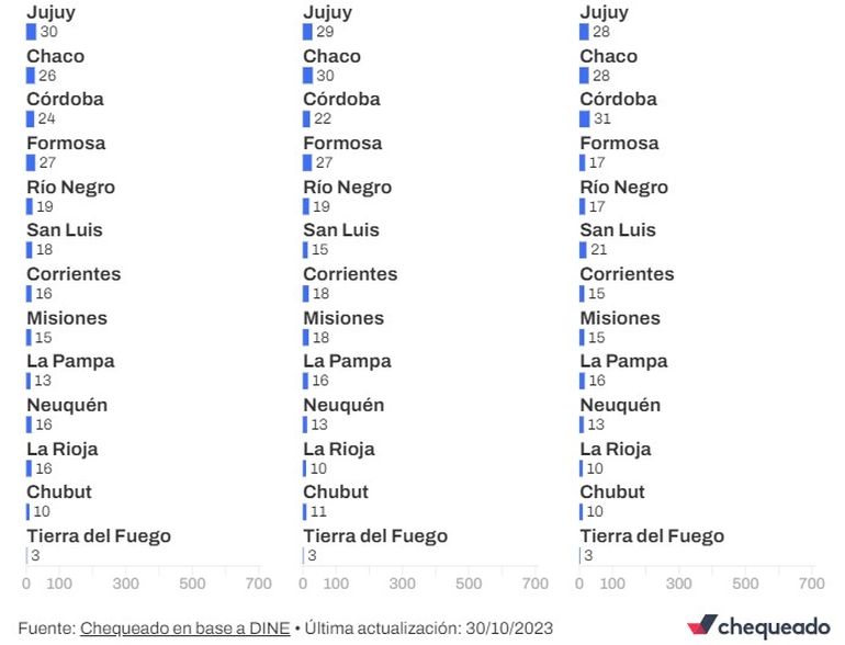 Además, Reverso -alianza que Chequeado coordina junto con AFP– pudo determinar, en base al análisis de los datos completos del escrutinio provisorio, que las inconsistencias afectaron por igual a los 3 candidatos más votados: Sergio Massa, Javier Milei y Patricia Bullrich.