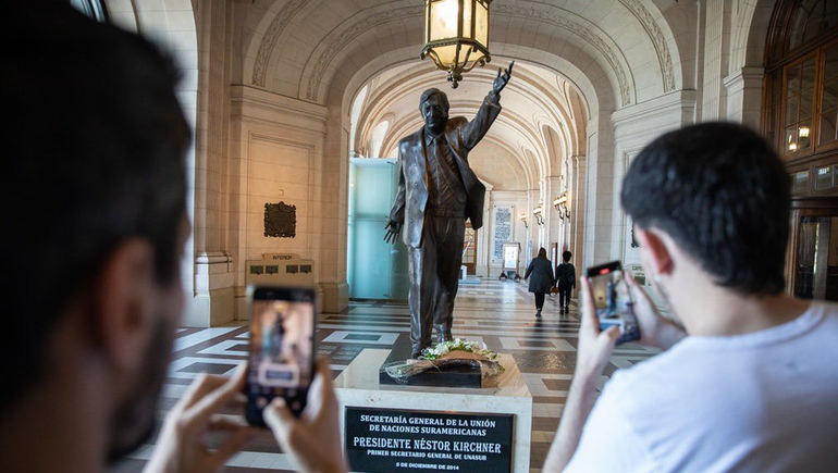 La estatua del expresidente Néstor Kirchner, que se encontraba en uno de los salones del Centro Cultural Kirchner (CCK), fue retirada del lugar por una decisión de las autoridades de la Unión de Naciones Suramericanas (Unasur).