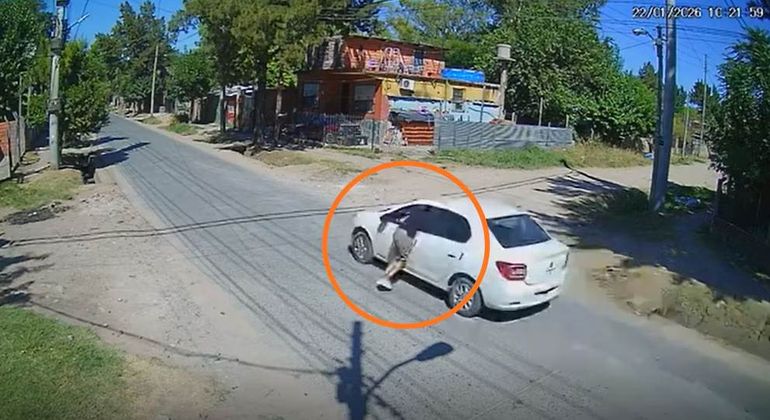 Incluso, las imágenes exhibieron cómo el asaltante derrapó sobre el asfalto con sus zapatillas ante la velocidad alcanzada. La secuencia llegó a su fin cuando el delincuente perdió el equilibrio y cayó abruptamente al pavimento, sin conseguir retenerse a la ventanilla. Finalmente, el conductor logró escapar del sitio sin sufrir lesiones.
