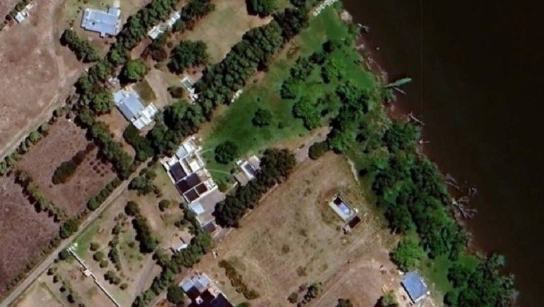 El predio denominado “La Gringa” se destaca por su cerco perimetral de hormigón y el ingreso asfaltado, en cuyo frente sobre la Ruta 1 hay un enorme portón que frena el ingreso a la enorme propiedad, que además de todo el verde y las diversas construcciones que se ven en su interior, tiene una vistosa costa parquizada que da al río Negro.