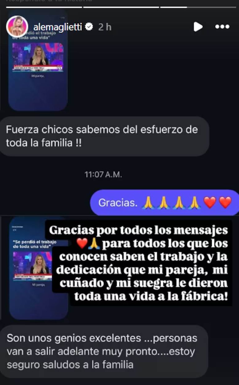 La panelista también agradeció el apoyo recibido a través de sus redes sociales: “Gracias por todos los mensajes. Para todos los que los conocen, saben el trabajo y la dedicación que mi pareja, mi cuñado y mi suegra le dieron, toda una vida a la fábrica”.