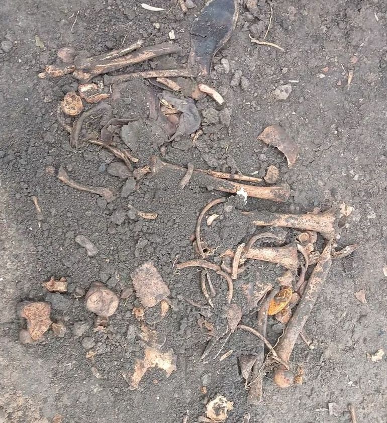 Cuando comenzaron las tareas de excavación en el terreno, una vez ya demolida la casa, los obreros encontraron restos óseos que luego la policía constató que eran humanos, y otras pertenencias, tales como relojes.