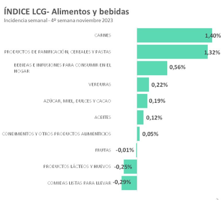De acuerdo con estimaciones de la consultora LCG, en la última semana de noviembre los productos que más subieron fueron:
