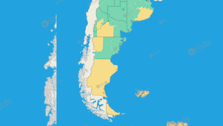 De esta forma, en Santa Cruz, Río Negro y Tierra del Fuego rige un alerta de nivel amarillo por viento. Estas áreas serán afectadas por vientos fuertes del sector oeste, con velocidades de entre 40 y 60 kilómetros por hora y ráfagas que pueden superar los 90 kilómetros por hora.