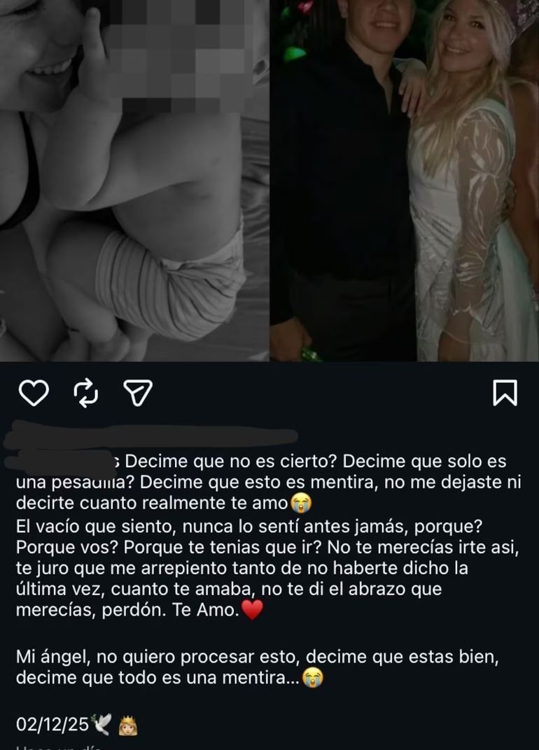 El hermano de Oriana, que fue quien recibió el impactante mensaje premonitorio del femicidio seguido de suicidio, expresó su dolor en las redes sociales en las últimas horas. Compartió imágenes de su hermana junto a su sobrino de 2 años y escribió un triste mensaje: "Decime que no es cierto, decime que solo es una pesadilla… No te dejaste ni decirte cuánto realmente te amo.