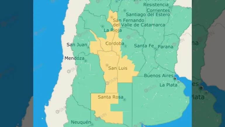 El organismo señaló que las zonas más afectadas serán Catamarca, Córdoba, La Pampa, La Rioja, San Juan, San Luis. Allí se prevén vientos del norte o noreste con intensidades de entre 40 y 60 kilómetros por hora, con ráfagas que podrían superar los 80 kilómetros por hora, especialmente en áreas serranas.