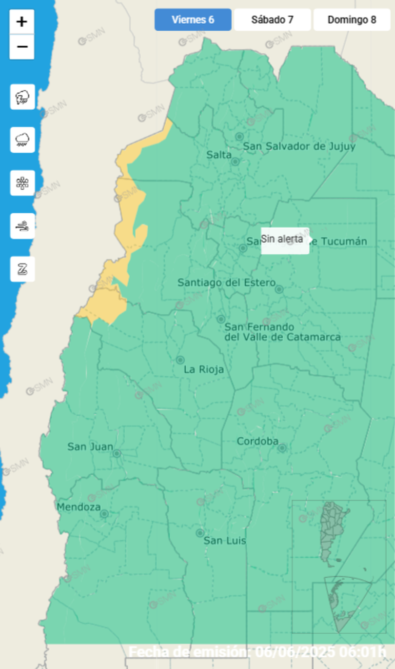 Y aclararon que la alerta amarilla por vientos fuertes se extenderá este viernes en las cordilleras de Salta, Catamarca y La Rioja.