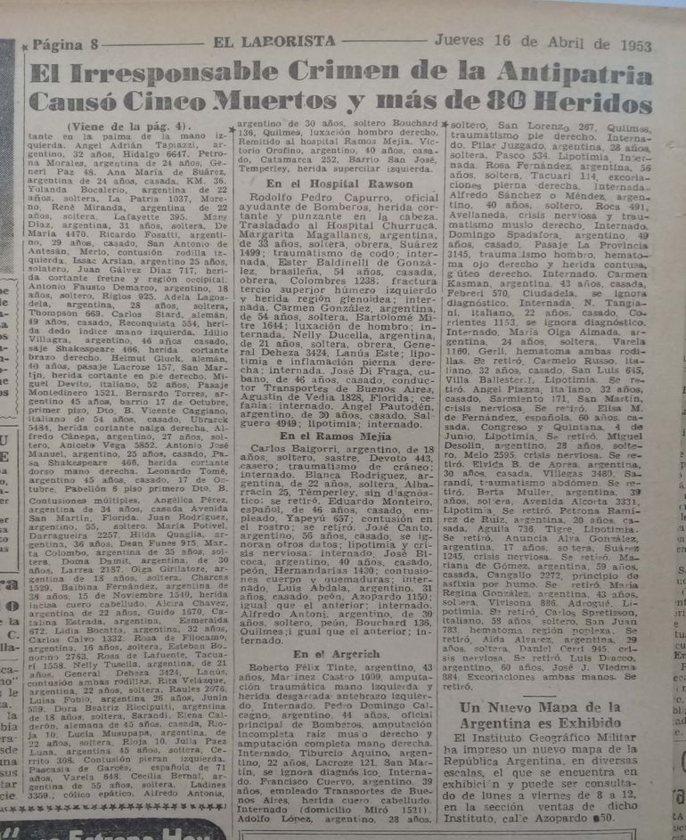Para la prensa y los historiadores antiperonistas, por supuesto lo trágico y grave fueron los incendios y no el demencial acto de terrorismo contra una multitud indefensa.