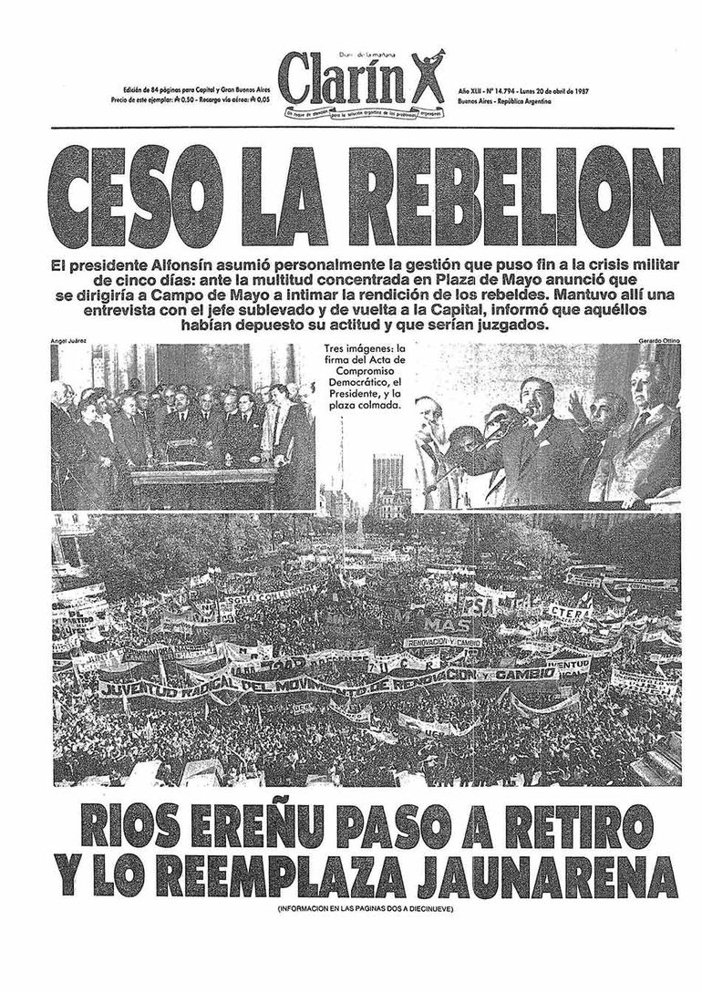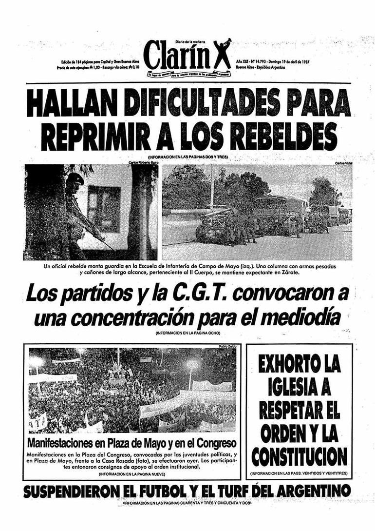Esta fue la primera, de tres sublevaciones militares, de debió soportar nuestra naciente democracia durante el gobierno del doctor Alfonsín. A quien muchos lo condenan por su laxitud y retroceso en materia de enjuiciamiento, y condena a los militares. Pero en esa critica se suele omitir, la hermenéutica, el contexto de la época.