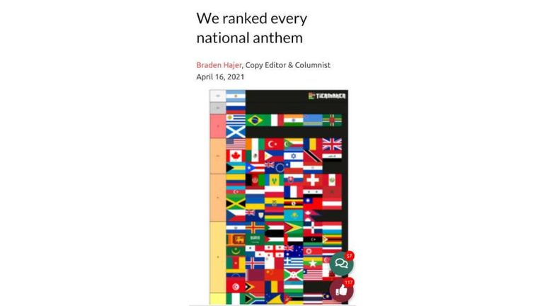 Uno de los jóvenes, Braden Hajer, explicó que para una presentación escolar debía escuchar el himno de Nigeria, pero dos de sus compañeros le propusieron escuchar todos y hacer un ranking.