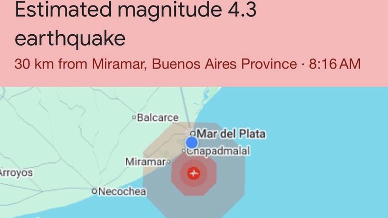 Mientras que Google ya lo anunció -aunque aclaraba que la magnitud había sido de 4.3 - pero el Servicio de Estados Unidos aún no calculó la profundidad. "Se sabe que sucedió en la zona entre Miramar y Chapadmalal, allí va a haber mayor oleaje pero no hay alerta de tsunami", informó el geólogo Isla.