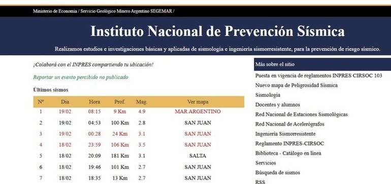 El Instituto Nacional de Prevención Sísmica (Inpres), confirmó que el sismo se produjo a las 8:15 de este jueves, a unos 9 kilómetros de profundidad.