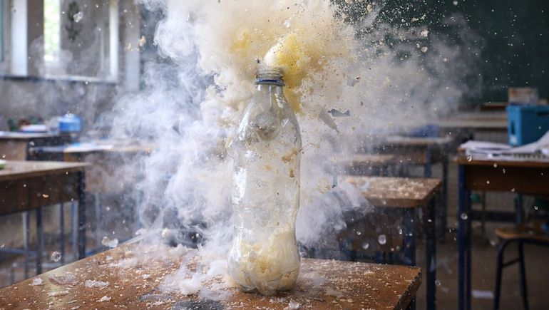 Según informó la institución a las familias, el estudiante manipulaba un envase plástico que contenía una mezcla de gases. La botella no resistió la presión interna y explotó, lo que generó humo y la dispersión de un polvillo con olor intenso.