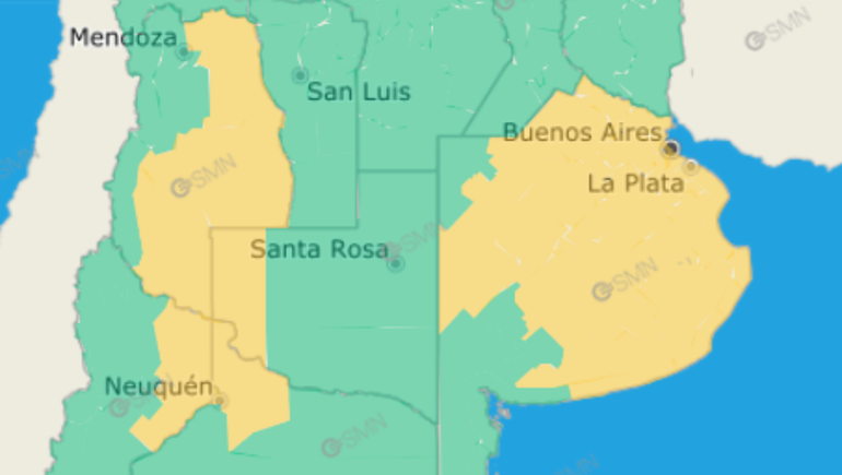 Las zonas afectadas por la alerta serán las provincias de Buenos Aires, Neuquén, Mendoza, La Pampa y Río Negro. En algunos de estos sectores los vientos se harán sentir con mayor intensidad y podrían alcanzar los 90 km/h.