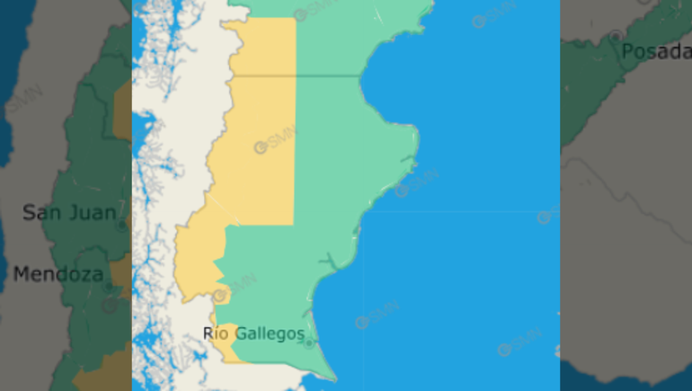 Mientras tanto, el organismo emitió otro alerta que afectará al sur del país, en este caso por fuertes vientos. "El área será afectada por vientos del sector oeste con velocidades entre 50 y 70 km/h, con ráfagas que podrán superar los 90 km/h", difundieron.