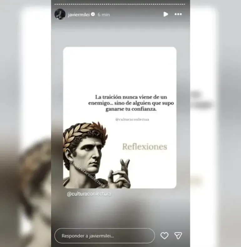 "La traición nunca viene de un enemigo... sino de alguien que supo ganarse tu confianza", fue la frase difundida por el jefe de Estado a través de una historia de Instagram. Sin destinatario explícito, la pregunta en el ámbito político es inevitable: ¿a quién le habla el Presidente?