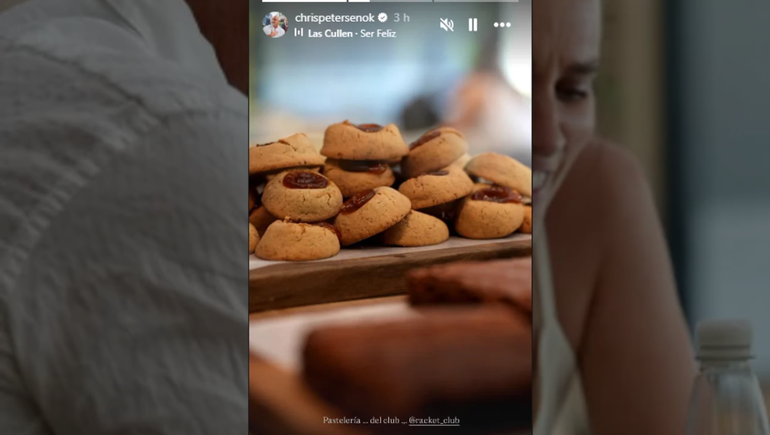 En una segunda imagen, Petersen mostró un plato de pepas de aspecto integral con dulce de membrillo, junto a la frase “pastelería del club”, en referencia al Racket Club.