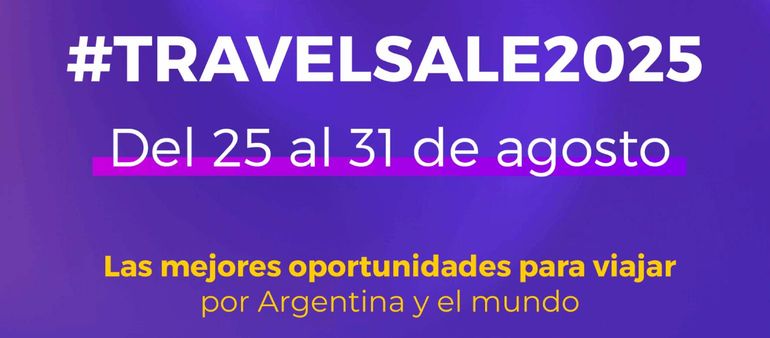Se viene la edición 2025 del Travel Sale, el evento de turismo digital más importante de la Argentina, que incluye ofertas, cuotas sin interés e importantes descuentos en vuelos, hoteles, traslados, paquetes y excursiones tanto para destinos nacionales como internacionales.
