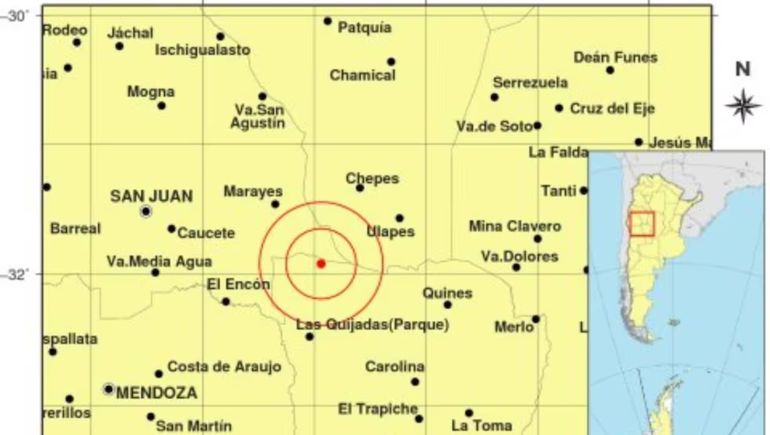 El sismo tuvo una magnitud de 2,6 ml (Richter) a 7 kilómetros de profundidad, precisó el INPRES.