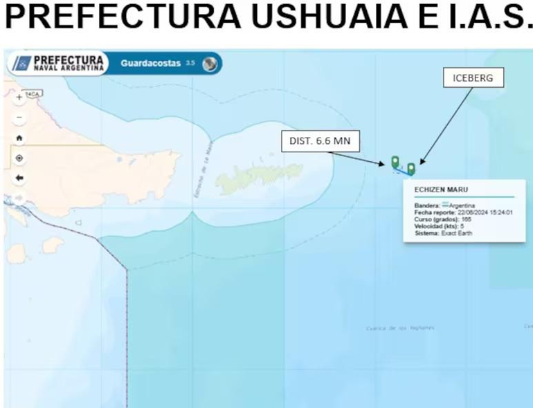 En declaraciones a FM Espectáculo de Ushuaia, el prefecto dijo que "la visibilidad es del 10 por ciento en superficie, tiene el 90% bajo el agua. Colisionar con eso tiene malos resultados para las embarcaciones de la zona, es un peligro latente".