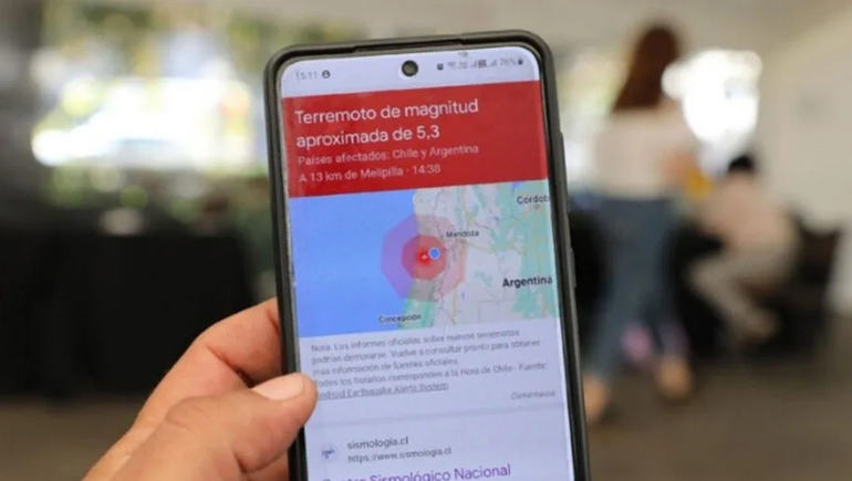 Los mendocinos fueron advertidos sobre el sismo a través de una notificación de Google que les llegó a sus teléfonos celulares. El sistema funciona a partir de los acelerómetros de los teléfonos y cuando siente el movimiento registra la alerta.