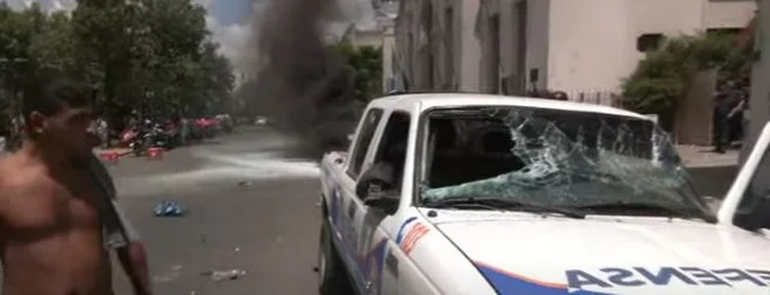 Los agentes reaccionaron, trataron de apagar el fuego, pero tiraron gas pimienta a los compañeros del repartidor, los cuales previamente se acercaban a los efectivos para que los dejaran pasar y aclamar el pedido de justicia ante las autoridades.