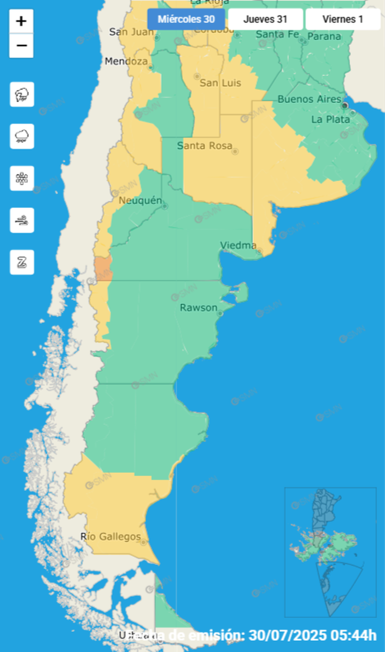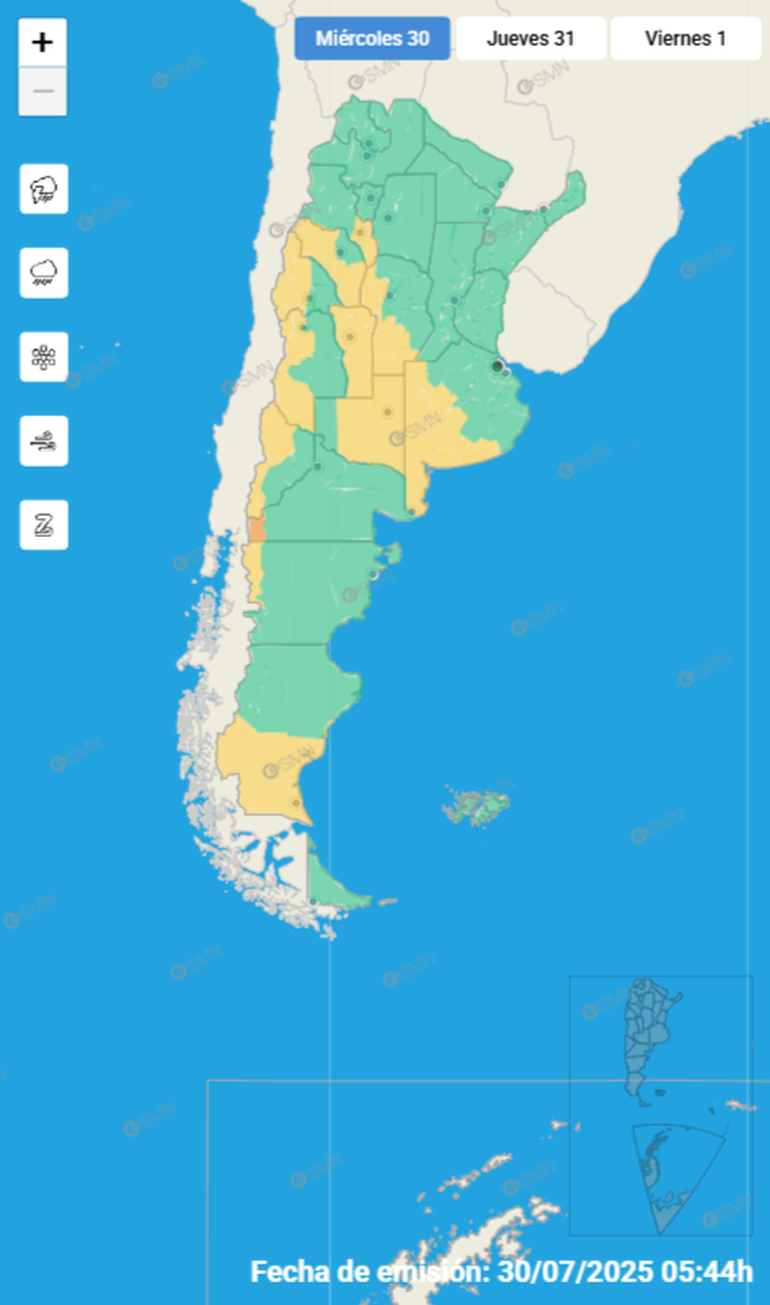 Puntualmente, el SMN emitió alerta para las siguientes zonas: