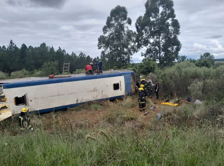 Según indicaron fuentes policiales, a la altura del kilómetro 801 de la Ruta 14, el colectivo que transportaba alrededor de 50 trabajadores de una empresa forestal correntina, perdió el control y quedó tumbada sobre su lado derecho, sobre la banquina.