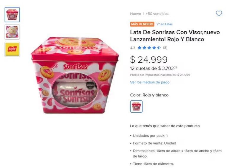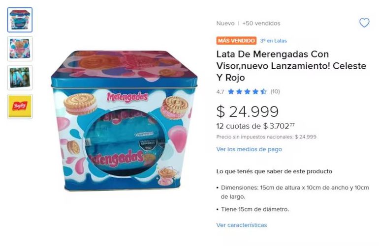Por ejemplo, ya se anuncia una lata de Merengadas con visor como “nuevo lanzamiento” en Mercado Libre, con opciones de retiro en local o envío.