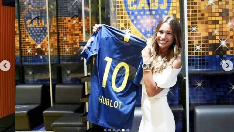 Carolina Ardohain estuvo este jueves en Casa Amarilla en la inauguración del reloj en la Bombonera a partir de un convenio entre el club y una empresa de relojes.