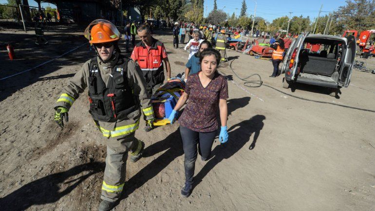 Carlos Mansilla, jefe de Bomberos Voluntarios de Plottier, explicó a LM Neuquén que el simulacro consistió en "un accidente vial protagonizado por cuatro vehículos y 18 víctimas con distintos grados de gravedad al quedar atrapadas en los vehículos".