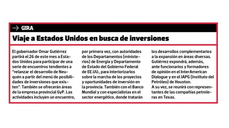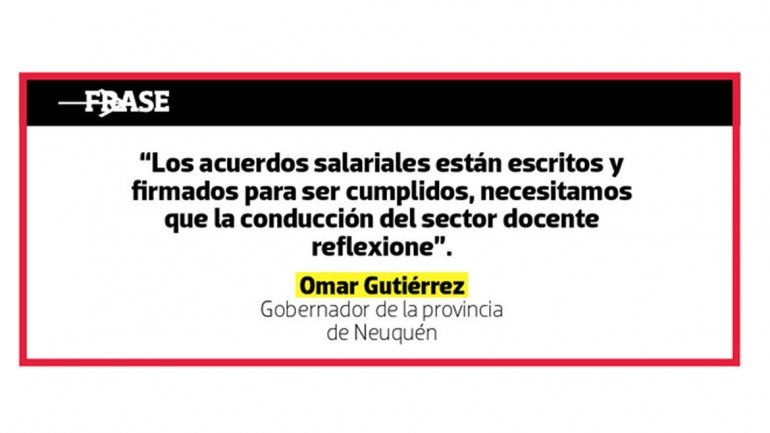 Neuquén.- El gobernador Omar Gutiérrez aseguró ayer que los salarios docentes superaron en un 13 por ciento a la inflación desde 2013 a la fecha, criticó la decisión del gremio ATEN de convocar a un nuevo paro e indicó que el Ejecutivo neuquino está analizando la posibilidad de prorrogar por decreto el acuerdo paritario del año pasado, que tiene que ver con la actualización de los haberes de forma trimestral en base al índice de precios al consumidor.