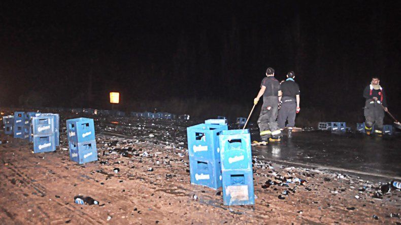 Un testigo que transitaba por allí manifestó que él y otros automovilistas tuvieron que bajarse para correr los cajones de cerveza. "Hay vidrios por todos lados en un radio de 150 metros", explicó.