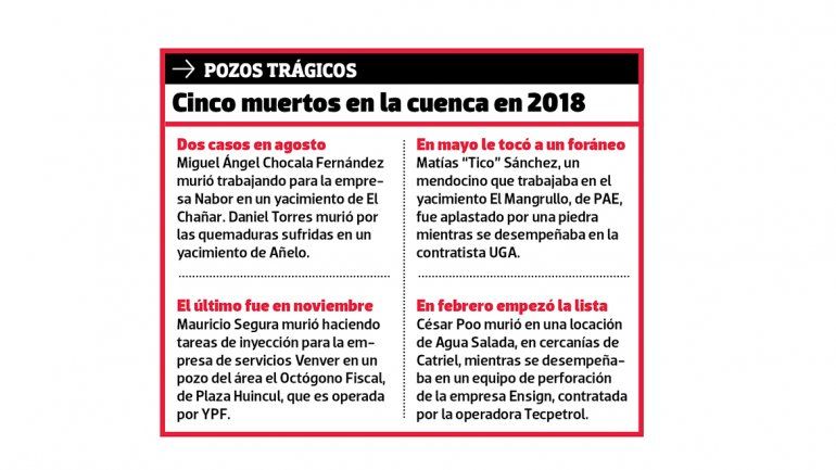 La muerte de Sajama se produjo mientras el sindicato de petroleros debatía una medida de fuerza como consecuencia de otro incidente, que le había costado la pérdida de un dedo a un operario en plena faena laboral. Ese caso se registró en el área Bajo del Choique-La Invernada, también de Rincón de los Sauces, operada por la compañía estadounidense Exxon Mobil.