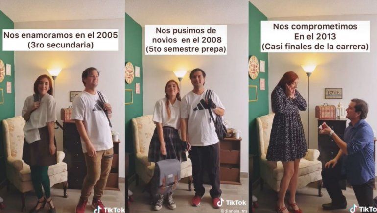 “Nos comprometimos en 2013 (casi finales de la carrera) y nos casamos en 2014 (nos perdimos la graduación por estar de Luna de miel)”, describieron en el audiovisual de TikTok.