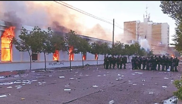 Posteriormente, los imputados habrían ingresado a los edificios para "iniciar focos ígneos valiéndose de los recursos existentes en las oficinas -hojas, libros, carpetas-, así como, saquear las cosas del lugar -computadoras, matafuegos, botellones de agua, etc".