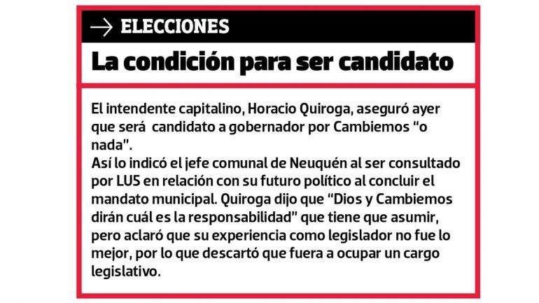 El intendente Horacio Quiroga les dio ayer una mala noticia a los funcionarios de su gabinete. “Olvídense de tomarse vacaciones en enero”, les dijo.
