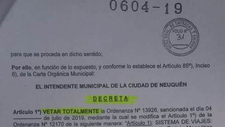 El proyecto, que impulsó el concejal Francisco Baggio, había sido aprobado con el voto de mayoría –no acompañó el oficialismo municipal- en el Concejo Deliberante a principios de julio pasado.
