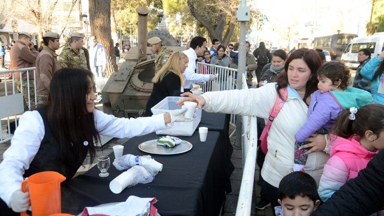 Los festejos por el Día de la Independencia comenzaron temprano en el Monumento a San Martín con un acto en el que no faltaron las escarapelas y banderas celestes y blancas, además del chocolate caliente y las tortas fritas.