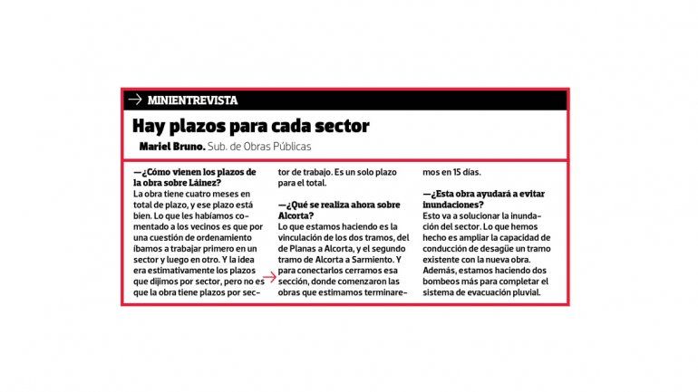 El bloqueo de Láinez no tiene fecha de resolución final. Sobre Alcorta, la estimación es que se mantenga por 15 días, durante los cuales modificará el recorrido de siete ramales del transporte público. Antes de finalizar, desde el municipio planean realizar dos cortes más en las calles Planas y Sarmiento antes de que se complete todo el cronograma de obras que se proyectaron para evitar las inundaciones los días de fuertes lluvias.