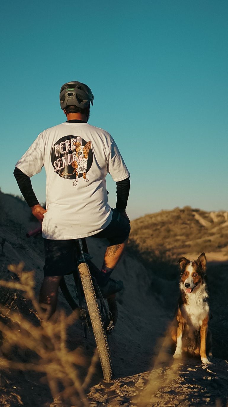 Retomando la historia de Perro Sendero, el emprendedor señaló: "El proyecto quedó demorado hasta el 2021 que lo pudimos retomar. Lo primero que hicimos fueron unos cuellitos. Después sacamos una línea de remeras técnicas para andar en bici tipo Dri-Fit. Hicimos dos modelos con una marca nacional grande y anduvieron muy bien. A la gente le gustó muchísimo y hoy se ven bastante en la barda".