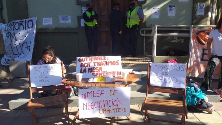 El personal de salud se apostó en las puertas de Casa de Gobierno este viernes a la mañana y decidieron, incluso, llevar una mesa para "describir gráficamente" el pedido a las autoridades.