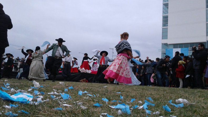 Durante el acto, dieron su discurso el intendente Horacio Quiroga y el gobernador Omar Gutiérrez. Luego, los estudiantes de las escuelas Nº178, Nº295, Nº195, Nº256, Colegio Millaray y Sagrado Corazón, y el Instituto de Formación Docente Nº 6, hicieron su promesa. En representación de las instituciones educativas, habló la directora de la escuela Nº 295, Patricia Burgos. Fue quien hizo la pregunta más esperada por los niños de cuarto grado.