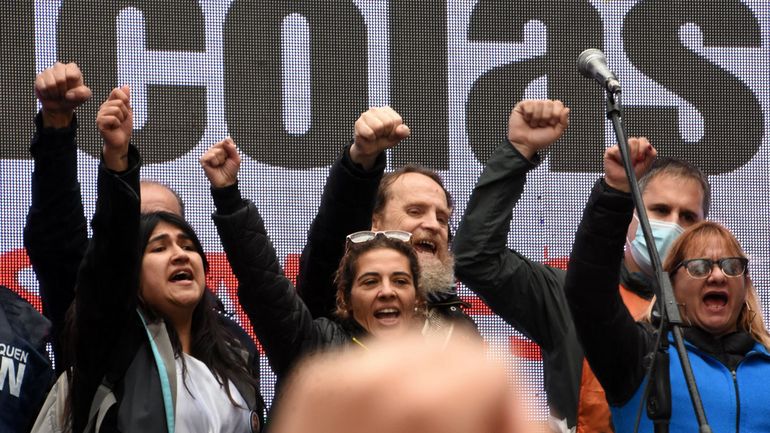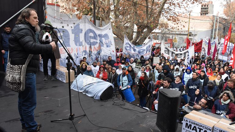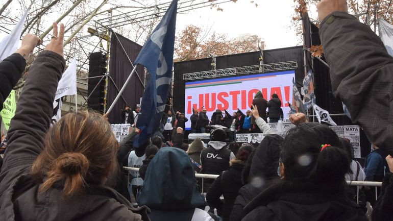 La movilización concluyó en Casa de Gobierno con un acto en el que hablaron los familiares y el secretario general Marcelo Guagliardo. Algunos tomaron el micrófono y otros prefirieron escribir cartas que fueron leídas por referentes del gremio docente. Este fue el caso del marido de Mónica Jara, Juan Villanueva, quien inició el escrito aclarando que no podía hablar ya que se quebraría.