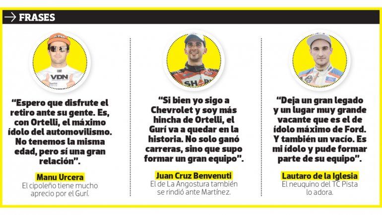En la misma línea se expresó Urcera, gran protagonista este año del TC. “El Gurí es de los grandes del automovilismo. Junto con Ortelli, son los dos ídolos máximos, corrieron con la camada de los Traverso, los Tito Bessone y de la camada anterior a ellos”, dijo Manu a LMN.