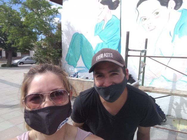 Dos vecinos de Zapala -ella, una acompañante terapéutica; él, un artista plástico- unieron sus voluntades para realizar un mural solidario y autogestivo en homenaje a los trabajadores de salud que luchan contra el Covid-19.