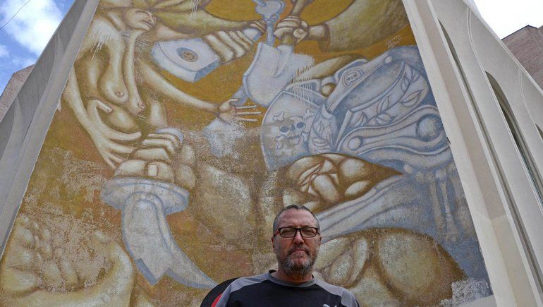 “Este mural representa mucho en mi vida personal y artística porque mi pintura era política aunque después la derivé para otros lados, pero marcaba la época de la resistencia”, explica este hombre nacido en el barrio porteño de Caballito, que en los años 70 llegó a Neuquén por razones de trabajo de su padre, lugar donde desarrolló una destacada labor artística.