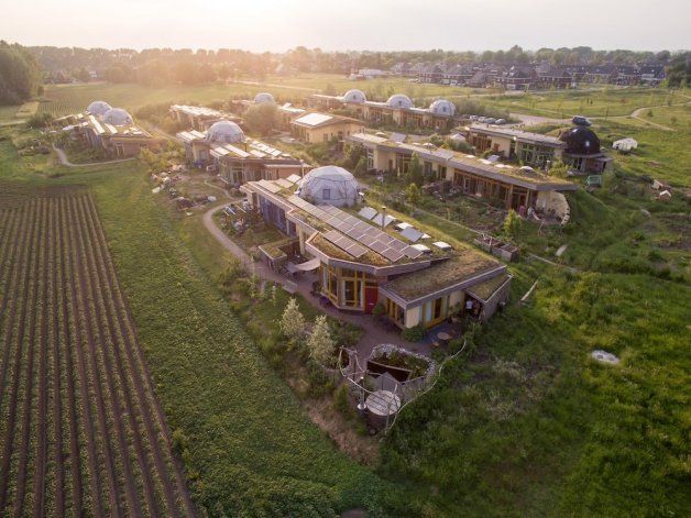 Las imágenes de su planificación parecen de película. Casas bioclimáticas en forma de domos geodésicos, techos verdes. Lagunas con parques a sus alrededores y plantaciones comunitarias.