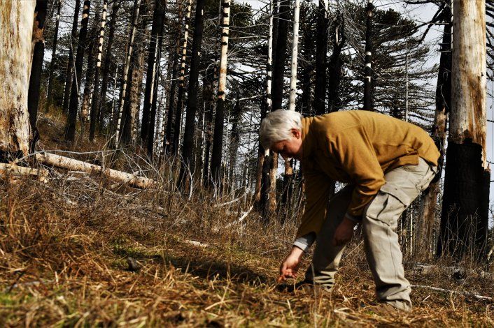 Biólogos del parque nacional Lanín plantaron a mano 30 kilos de piñones para salvar un bosque quemado en Ñorquinco Intentarán recuperar ocho hectáreas que llevan casi una décadas cubiertas de gris y volverán a llenarse de pehuenes.